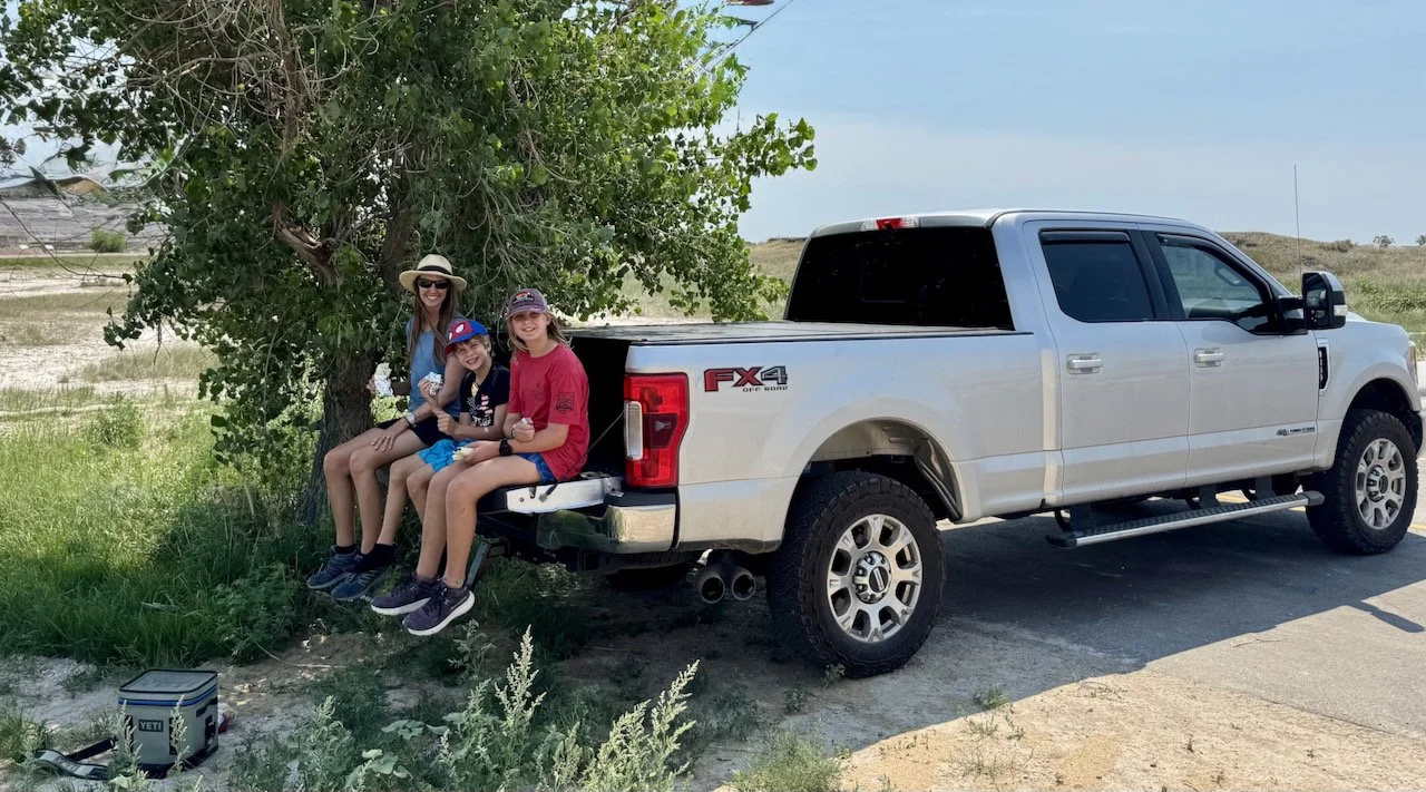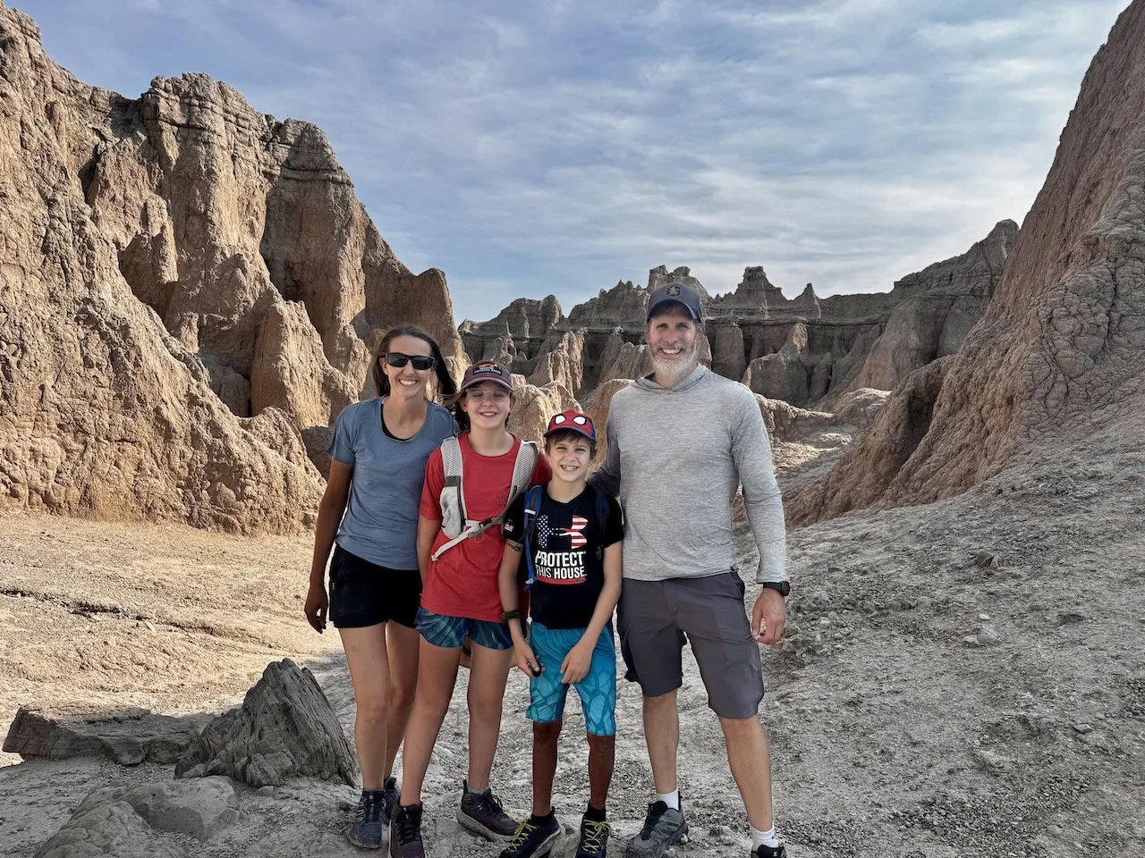 A park ranger gave our kids their special badges and took our family’s photo for the fossil-finder wall, where Team Roberts will live in Badlands fossil-finding infamy (until 2026).