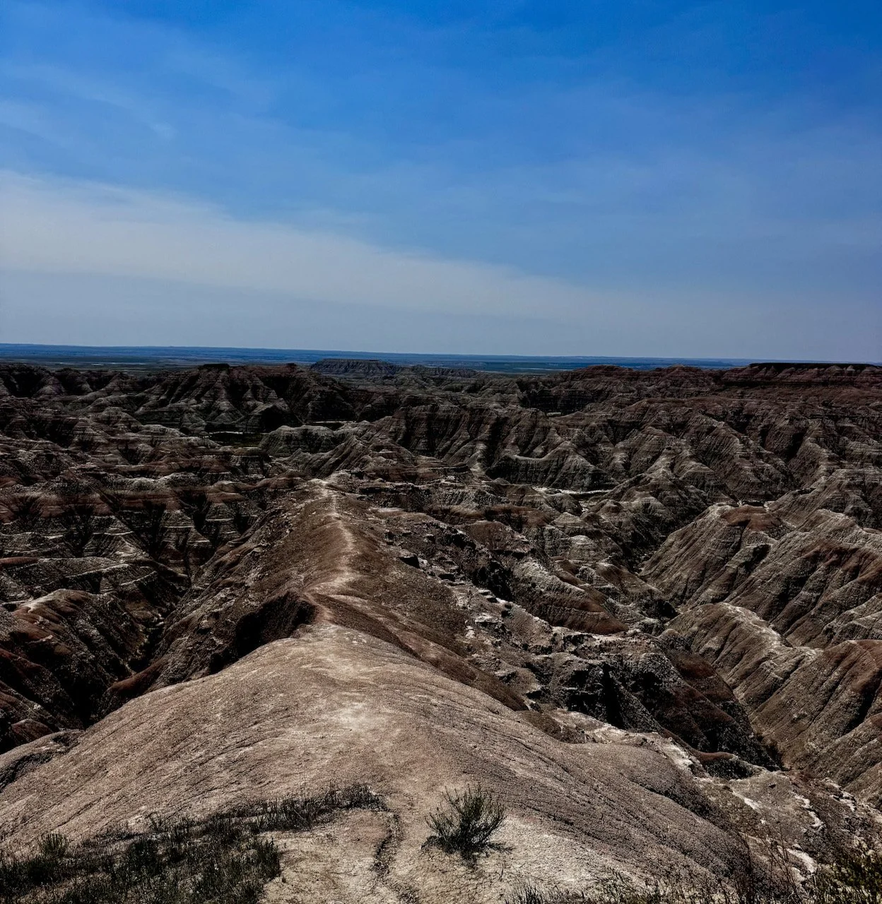 In a distance of just over 100 miles, the rolling green hills of Sundance Wyoming morphed into a barren, sandy desert. The truck’s thermometer clocked 114 (!) as we approached our campsite near Badlands National Park.