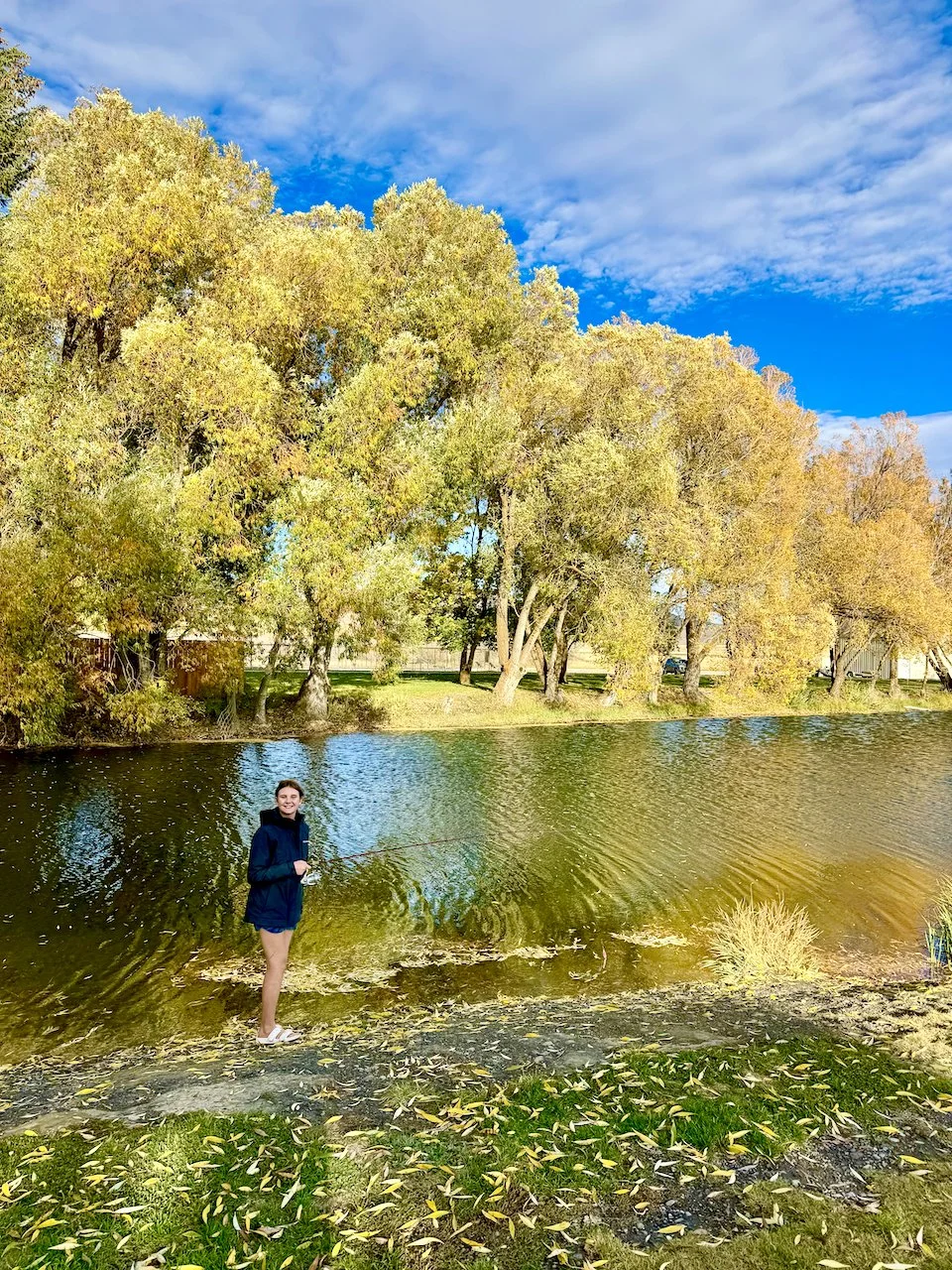 Instead, we went to a local fish hatchery that had a small but picturesque pond. We caught a few fish, but the pond seemed pretty fished out.