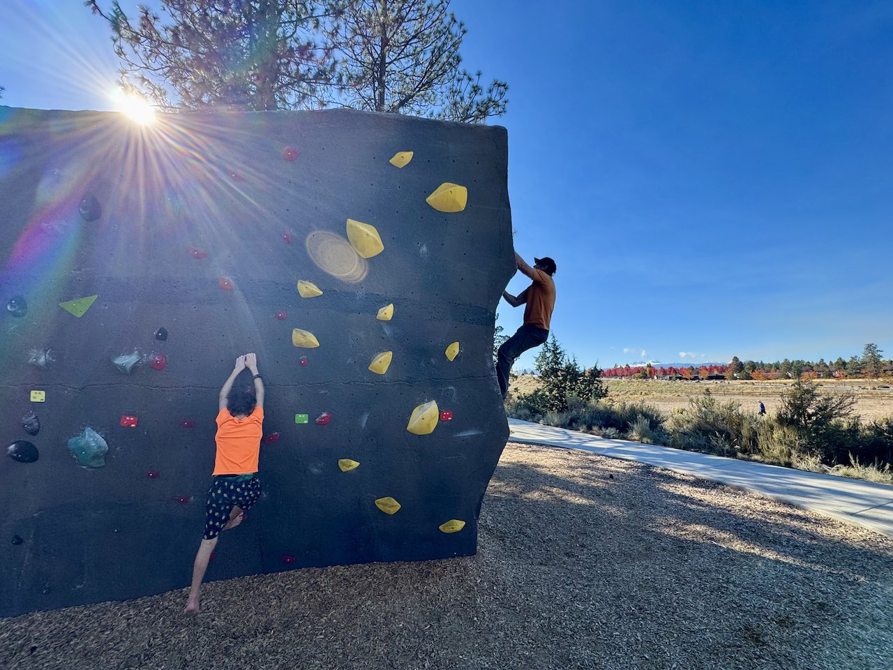 Super fun climbing wall in a Bend municipal park. Peyton may have been checking Zillow on the other side of the wall…