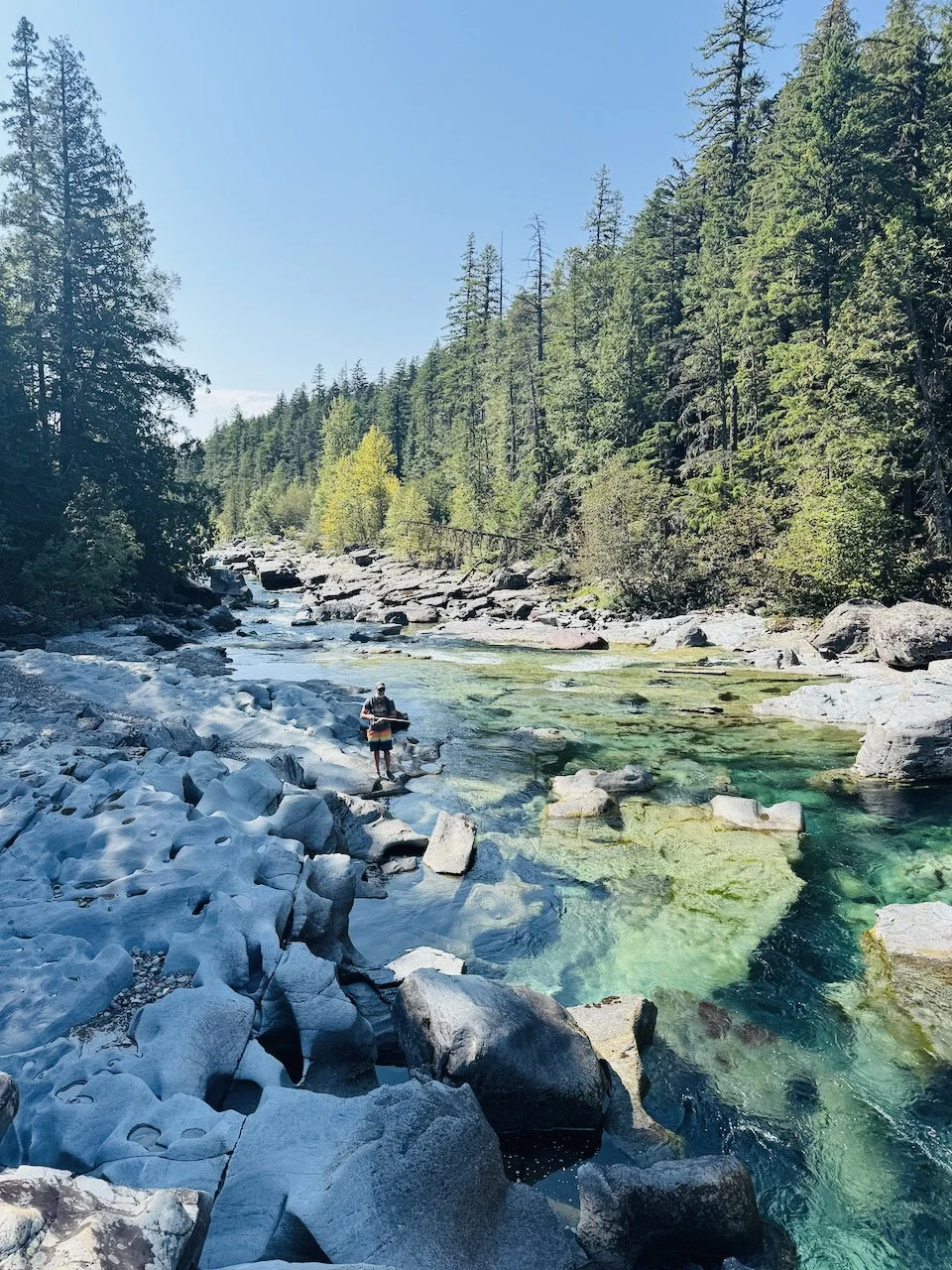 In McDonald Creek, Nick hooked a few small trout, and he and the kids swam in the chilly, gorgeous water. Their favorite part was warming up on cliffs then leaping into the icy water.