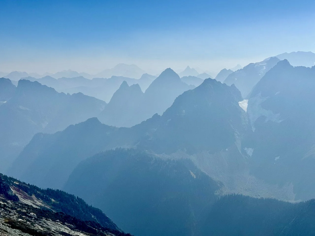 View of the Cascades from the Sahale Glacier - Stunning despite wildfire smoke in the area