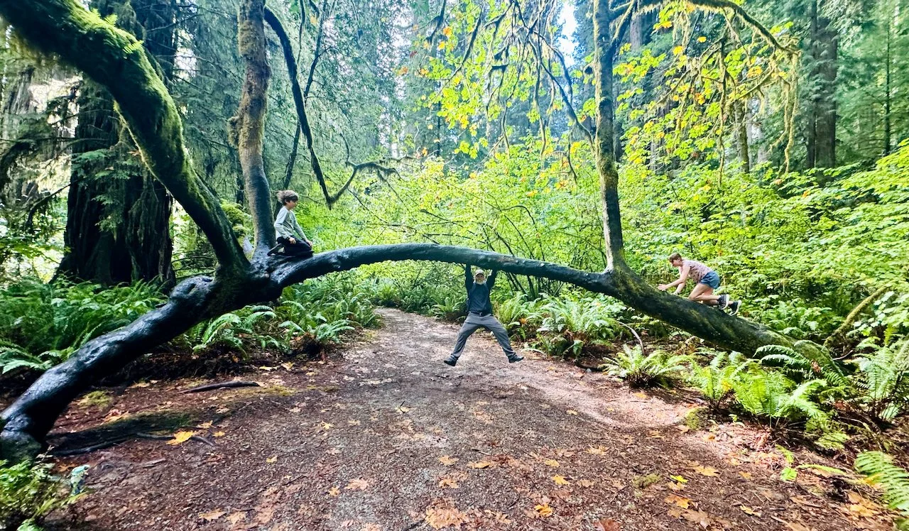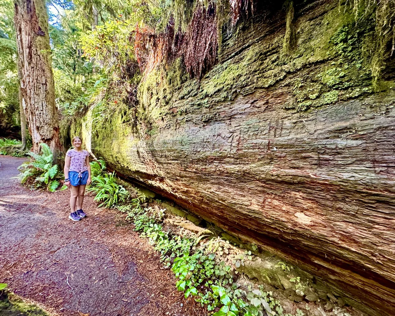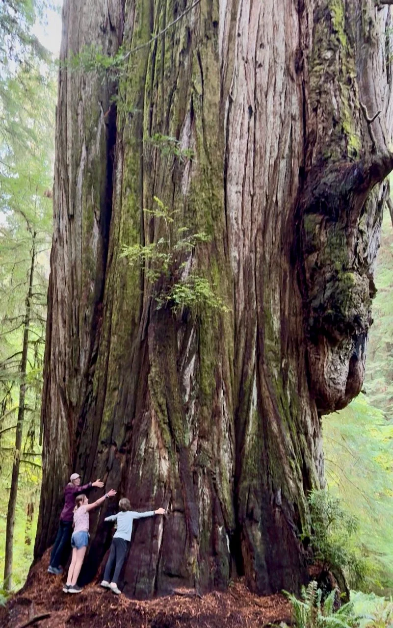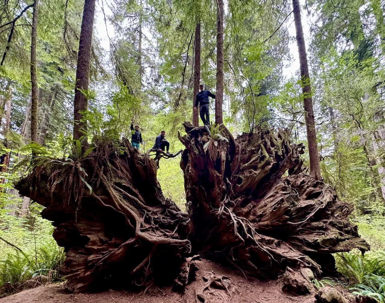 One fascinating thing we learned about Redwood trees is that despite being capable of growing in excess of 300’ tall, they have shallow root systems, reaching only 6 to 12 feet deep. Instead of digging deep taproots, their stability comes from spreading roots outward up to 80-100 feet and intertwining with the roots of other trees in a grove to create a shared support network.