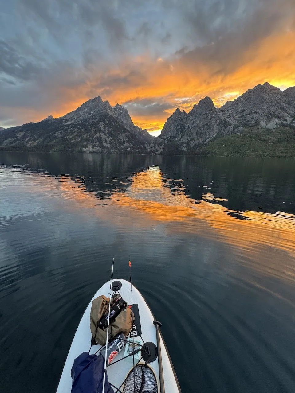 Our last night in the Tetons, after Sadie and I paddled the Snake, Nick took off solo after dinner to paddle and fish at Jenny Lake. The photos he sent of the sunset took my breath away.