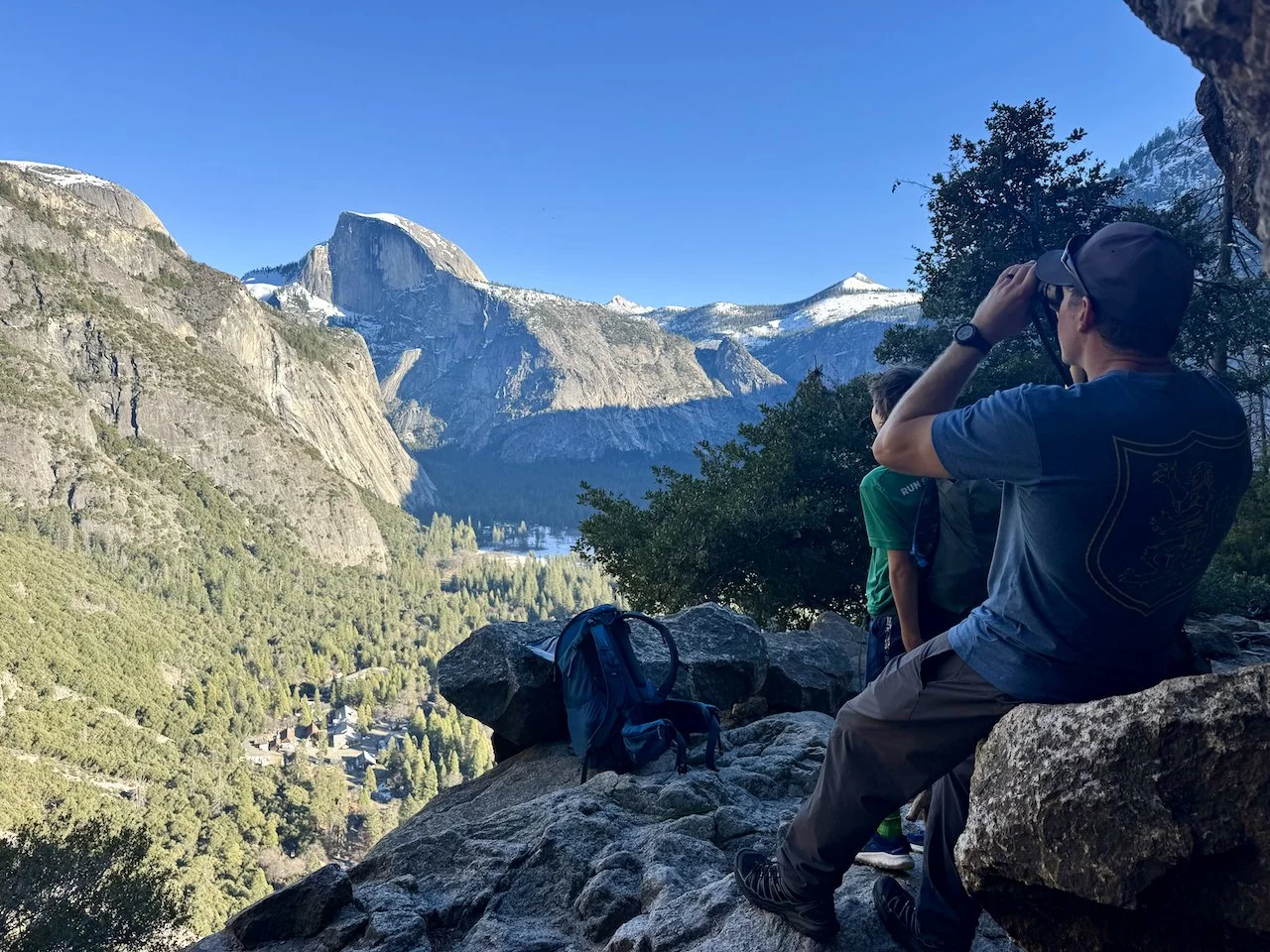 “Dad! I’m here at the visitor center and told one of the volunteers about everything we have done on this trip and that we wanted to hike Half Dome, but can’t because we don’t have microspikes. He said that he has two pairs in his car, one for him and one for his wife, and he is willing to let us borrow them!”