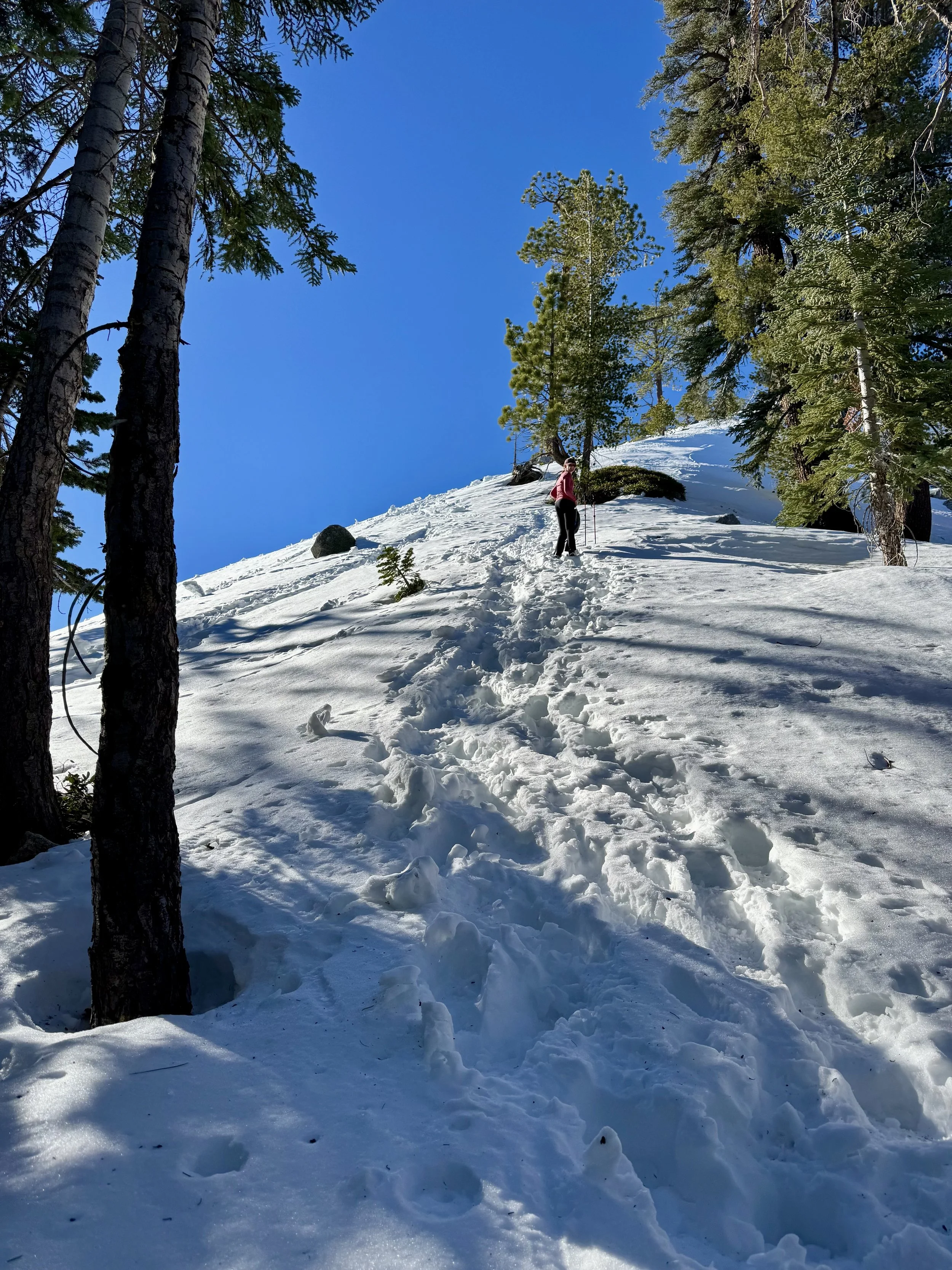 The last 4+ miles were steep and snow covered, each way.