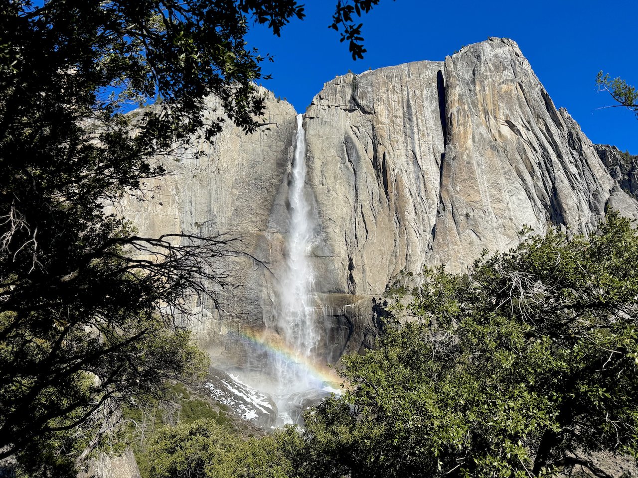 And a rainbow decorates the upper falls.