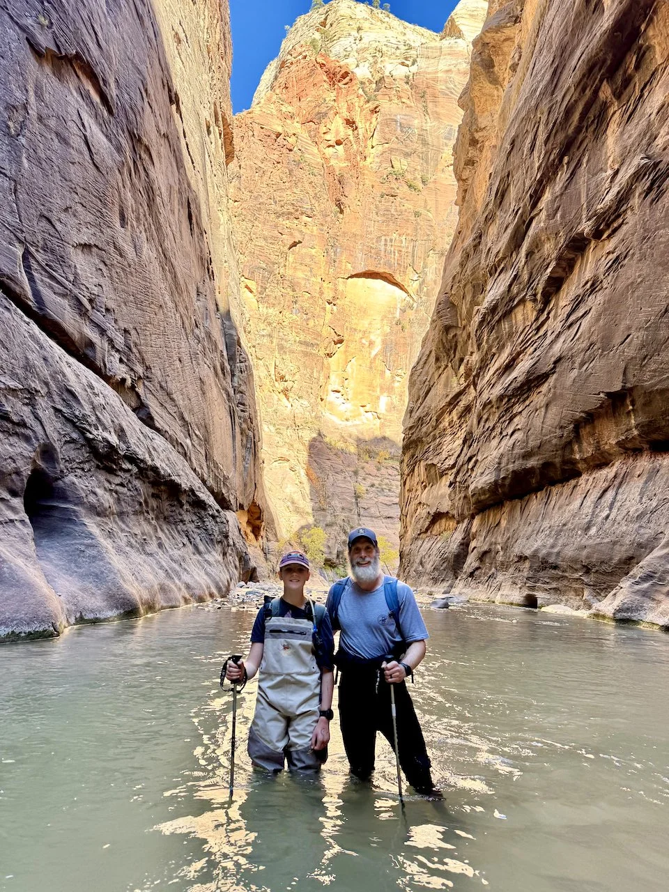 Meanwhile, Sadie and I headed upstream towards The Narrows, a unique and signature hike of Zion National Park. Instead of walking on a traditional trail, you wade and walk in a deep slot canyon of the Virgin River.