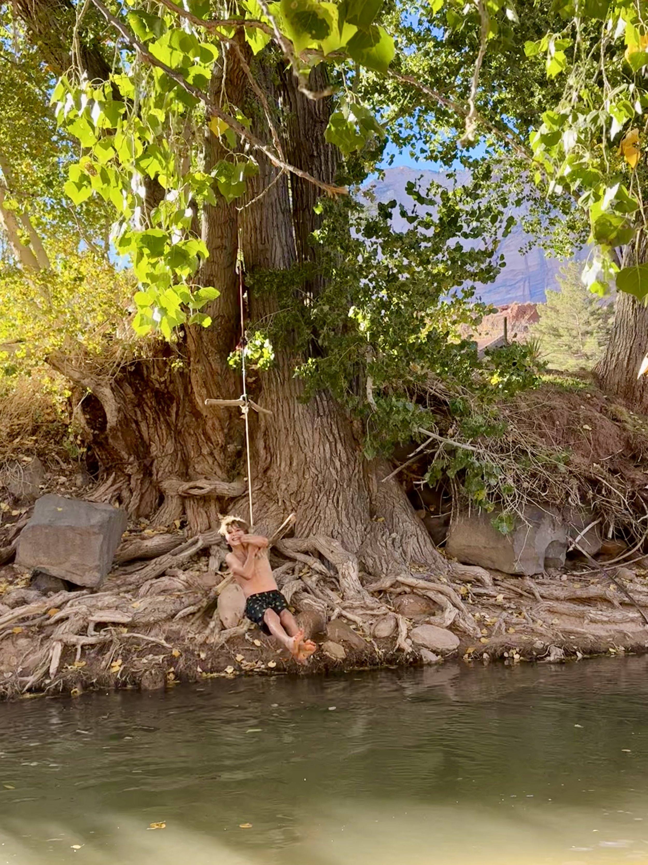 The Virgin River was about 50 yards behind our campsite and Nate quickly discovered a rope swing and swimming hole.